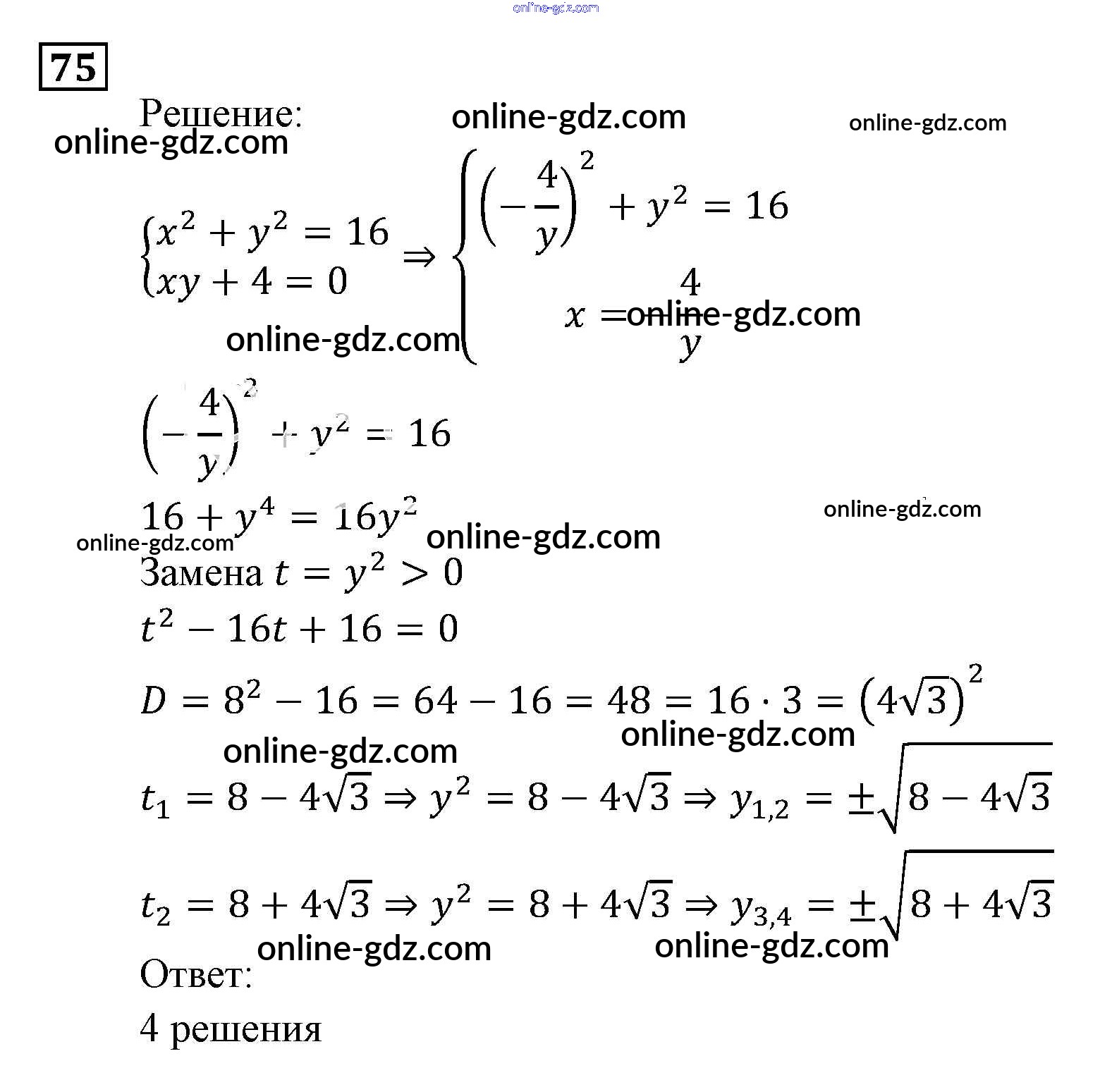 Готовые домашние задания по Алгебре за 9 класс Задачник Мордкович, Александрова 2010 - Уравнения и системы уравнений Итоговое повторение (2010) 75
