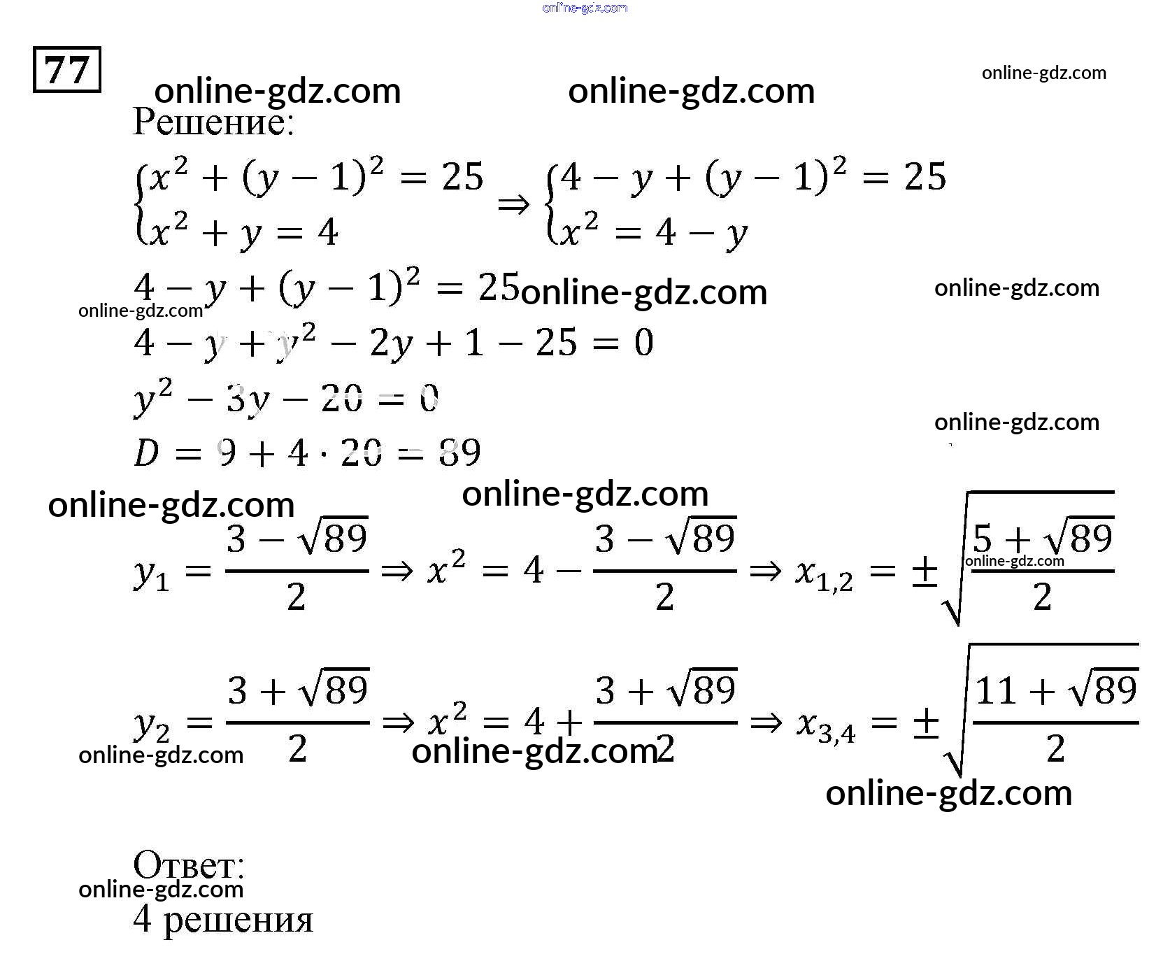 Готовые домашние задания по Алгебре за 9 класс Задачник Мордкович, Александрова 2010 - Уравнения и системы уравнений Итоговое повторение (2010) 77