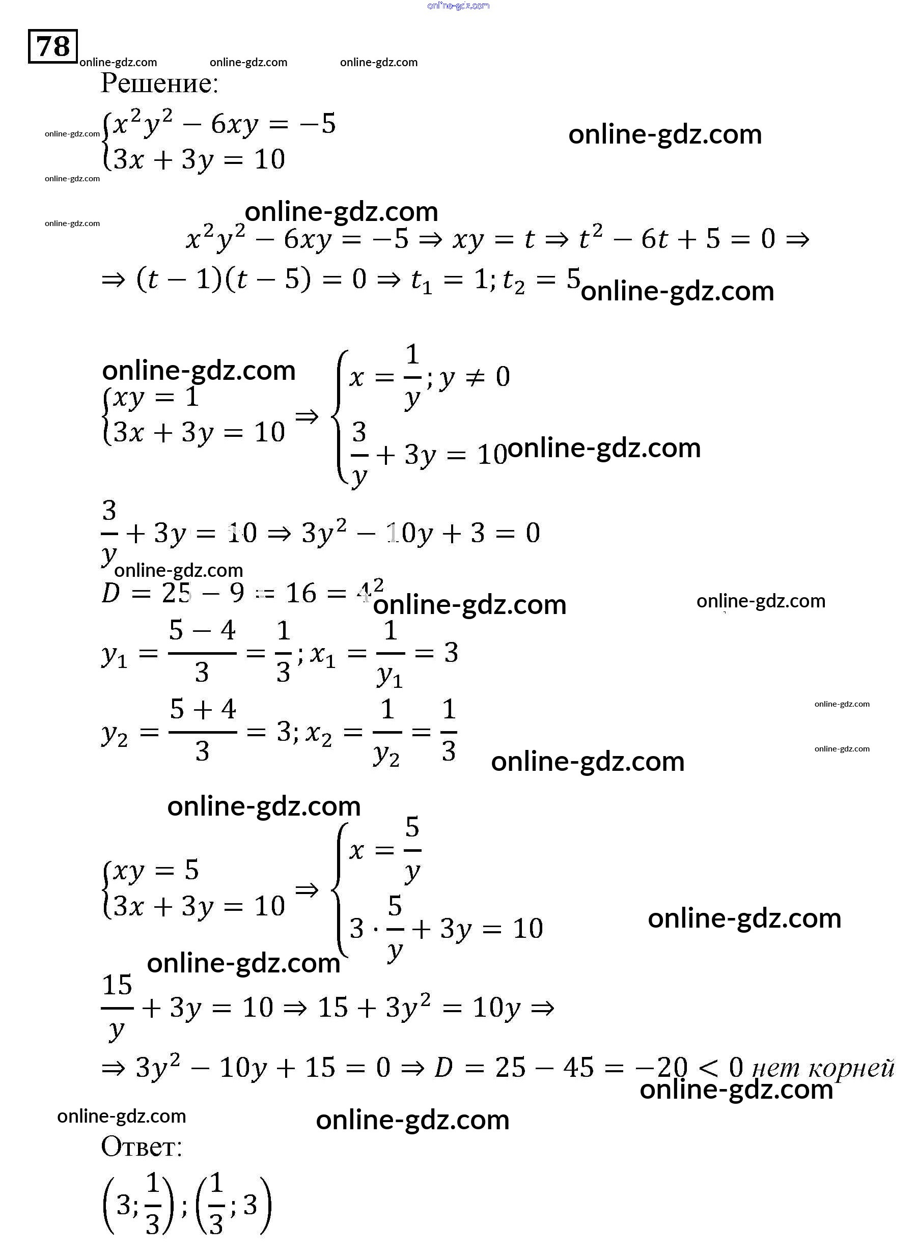 Готовые домашние задания по Алгебре за 9 класс Задачник Мордкович, Александрова 2010 - Уравнения и системы уравнений Итоговое повторение (2010) 78