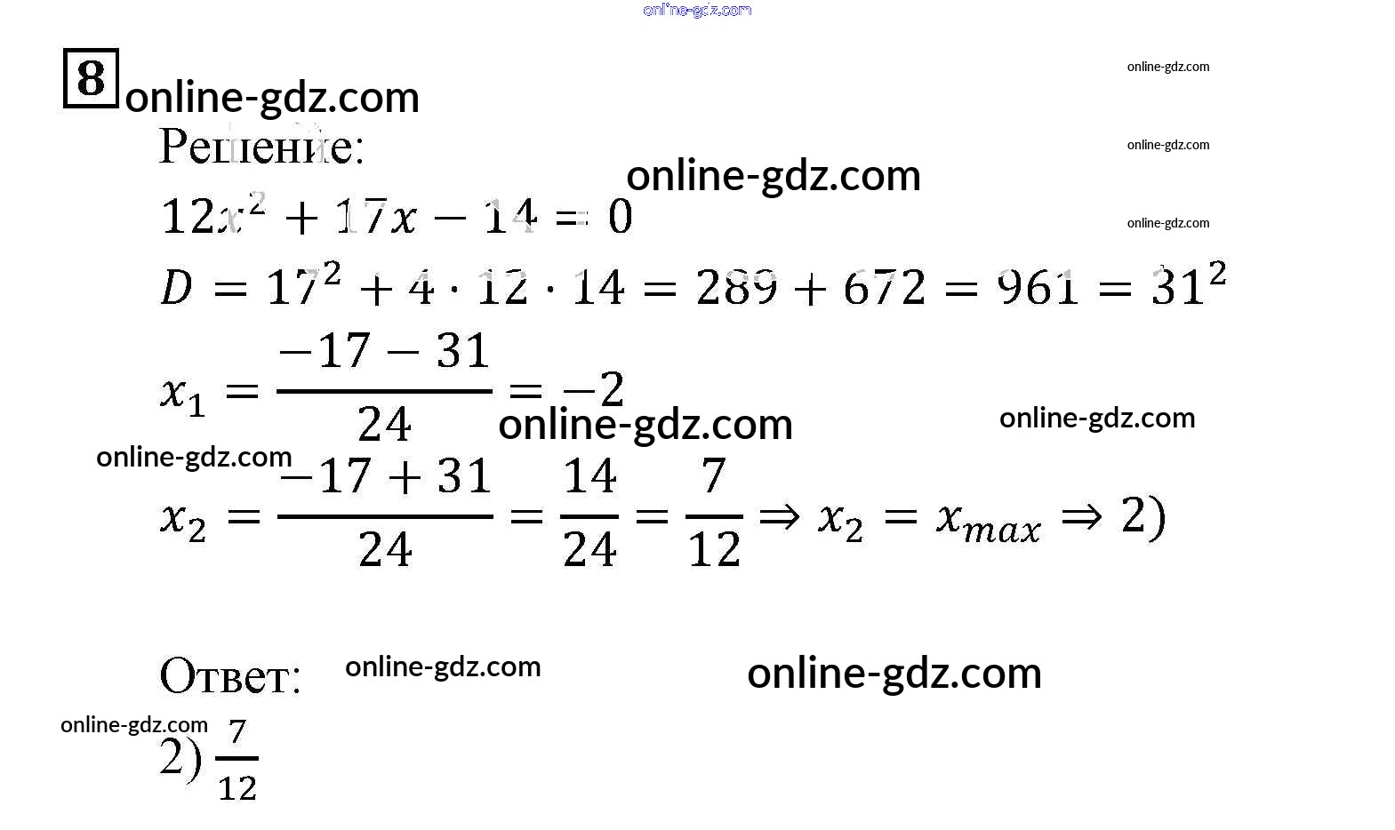 Готовые домашние задания по Алгебре за 9 класс Задачник Мордкович, Александрова 2010 - Уравнения и системы уравнений Итоговое повторение (2010) 8