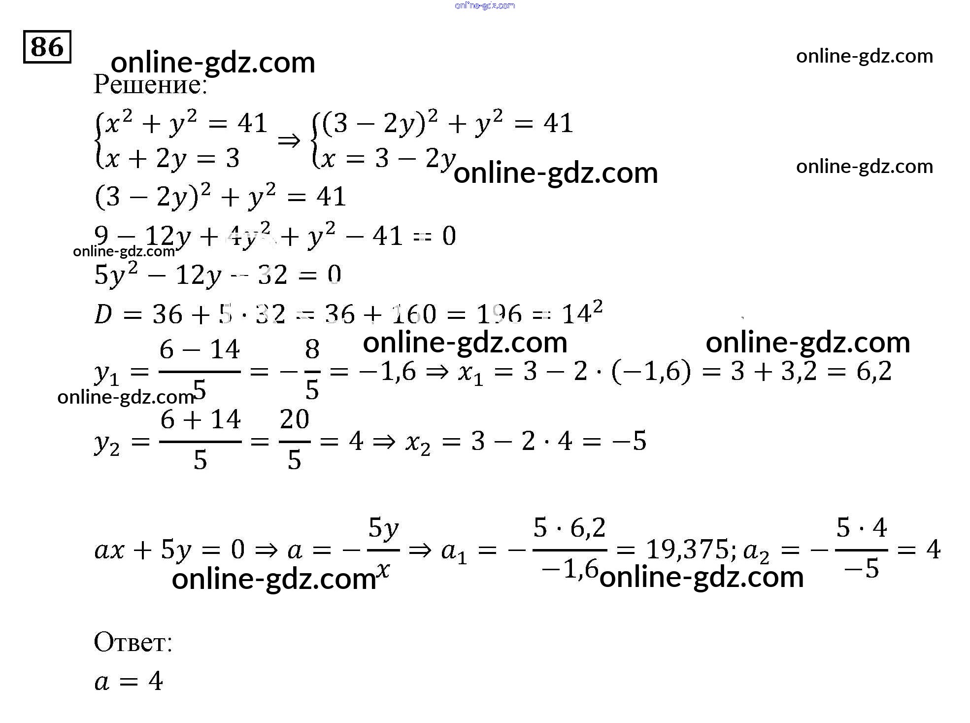 Готовые домашние задания по Алгебре за 9 класс Задачник Мордкович, Александрова 2010 - Уравнения и системы уравнений Итоговое повторение (2010) 86