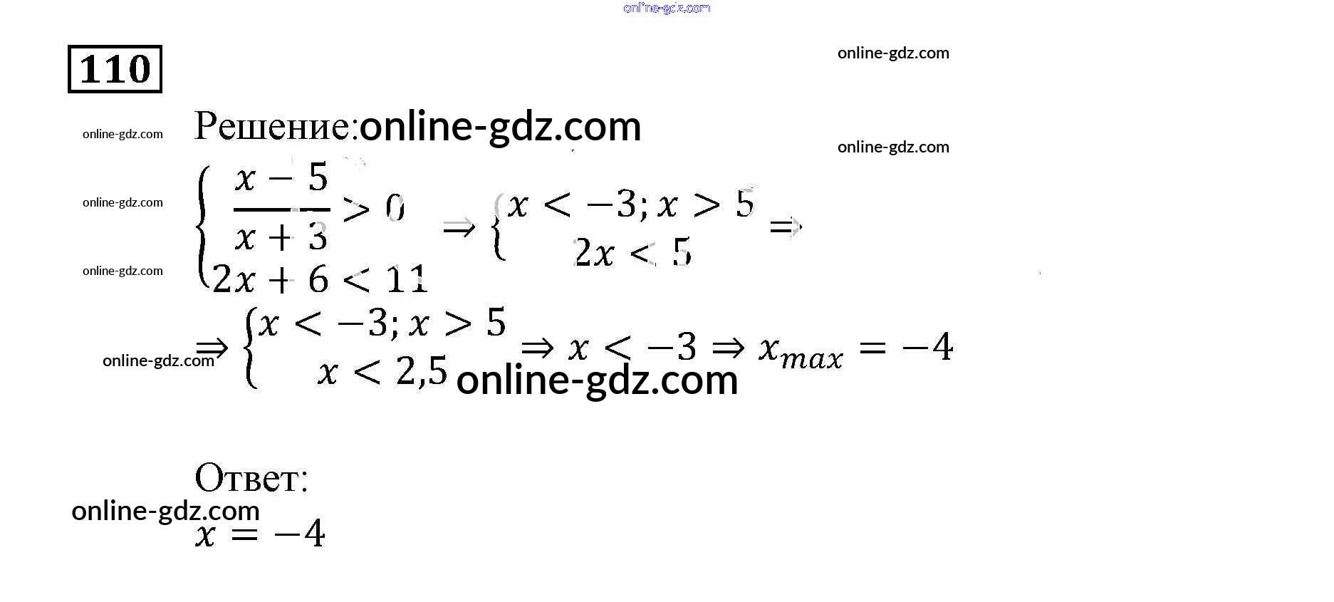 Готовые домашние задания по Алгебре за 9 класс Задачник Мордкович, Александрова 2010 - Неравенства и системы неравенств Итоговое повторение (2010) 110