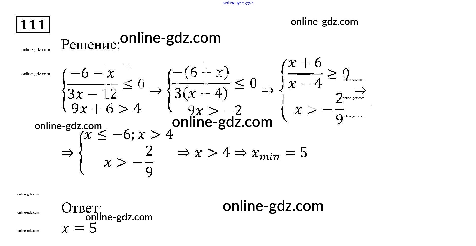 Готовые домашние задания по Алгебре за 9 класс Задачник Мордкович, Александрова 2010 - Неравенства и системы неравенств Итоговое повторение (2010) 111