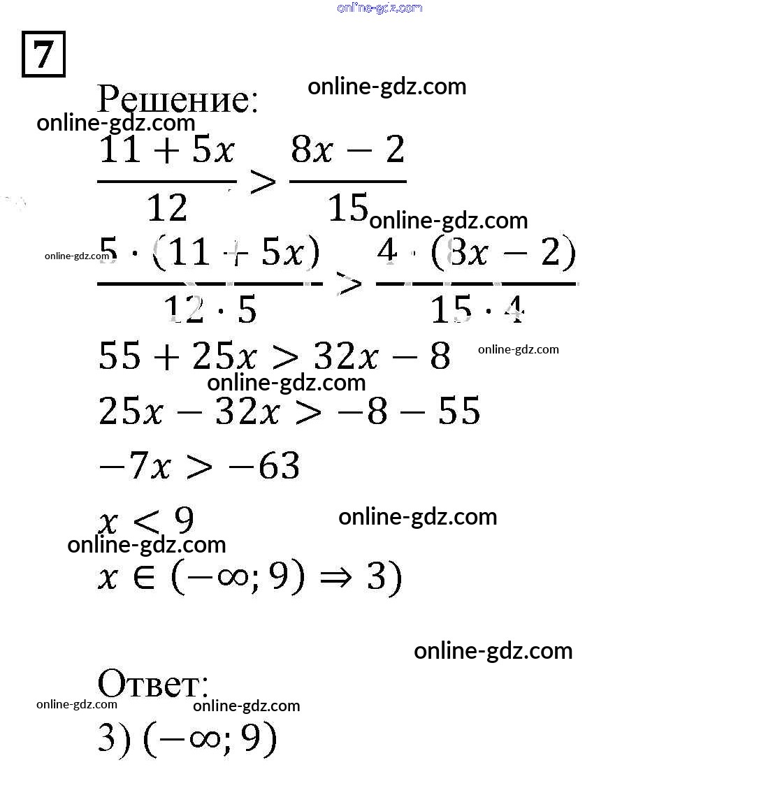 Готовые домашние задания по Алгебре за 9 класс Задачник Мордкович, Александрова 2010 - Неравенства и системы неравенств Итоговое повторение (2010) 7