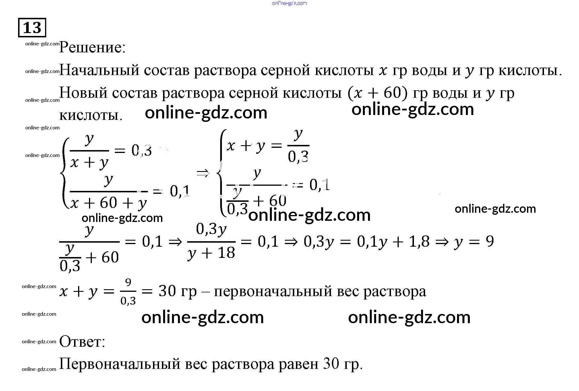 Готовые домашние задания по Алгебре за 9 класс Задачник Мордкович, Александрова 2010 - Задачи на составление уравнений или систем уравнений Итоговое повторение (2010) 13