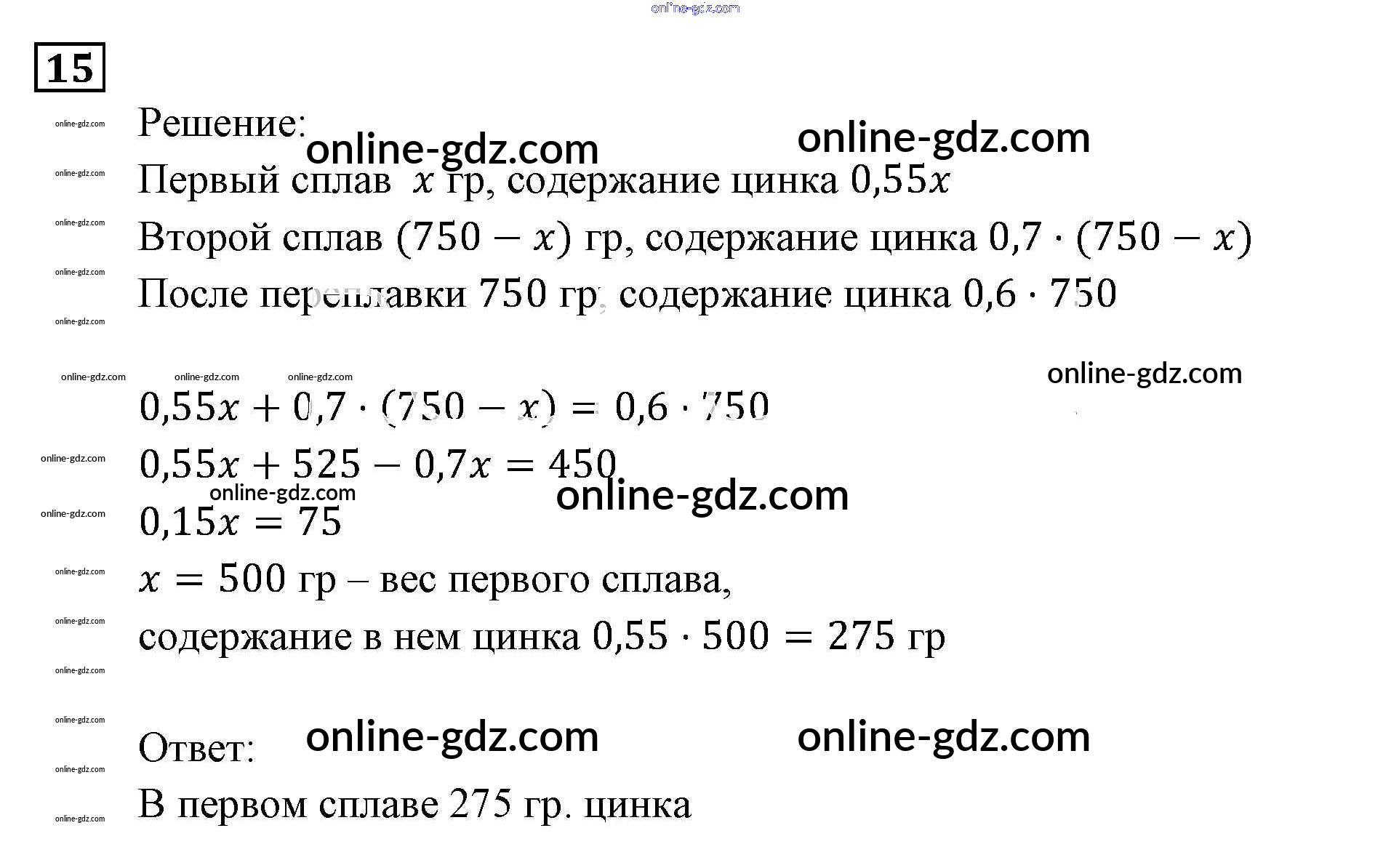 Готовые домашние задания по Алгебре за 9 класс Задачник Мордкович, Александрова 2010 - Задачи на составление уравнений или систем уравнений Итоговое повторение (2010) 15