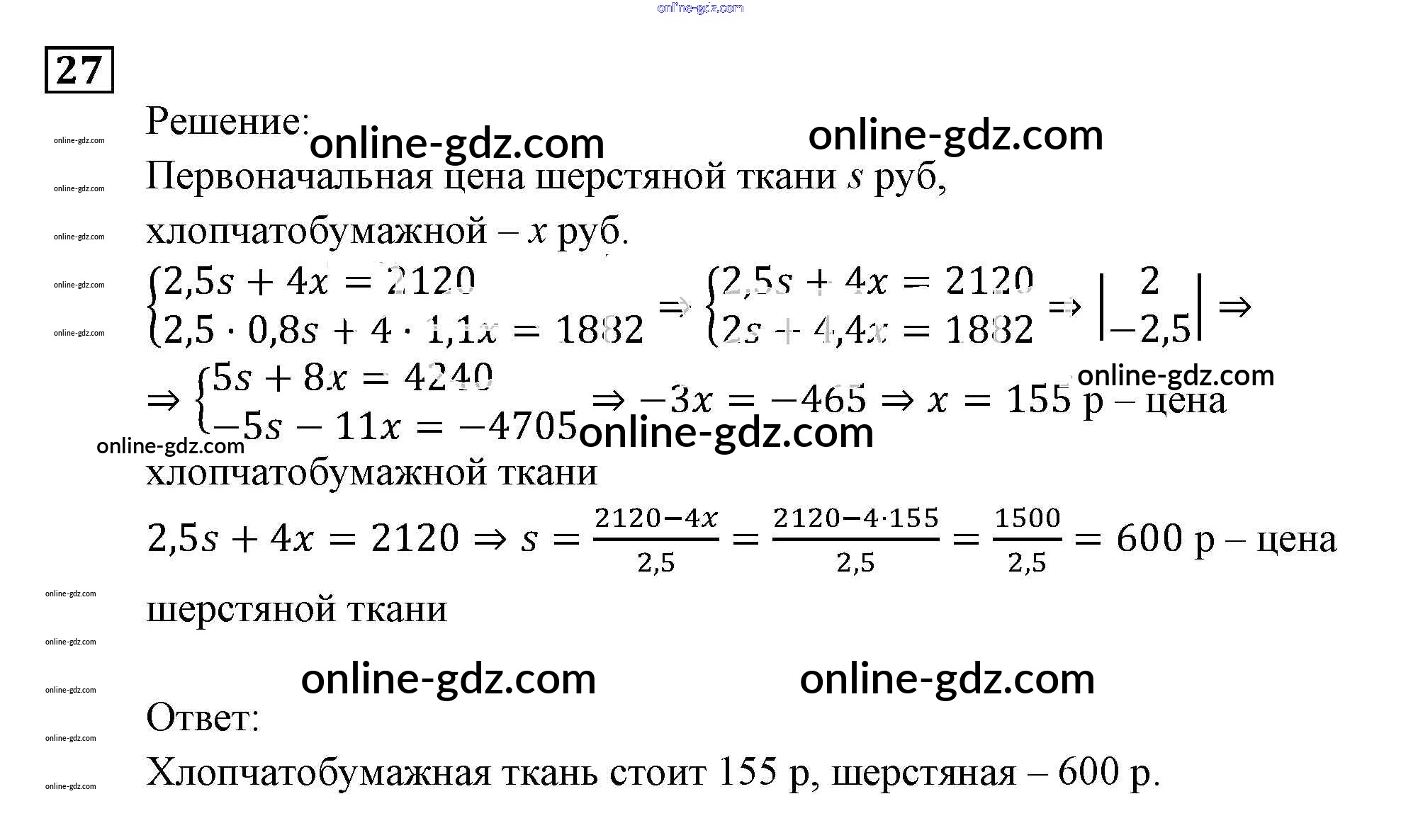 Готовые домашние задания по Алгебре за 9 класс Задачник Мордкович, Александрова 2010 - Задачи на составление уравнений или систем уравнений Итоговое повторение (2010) 27