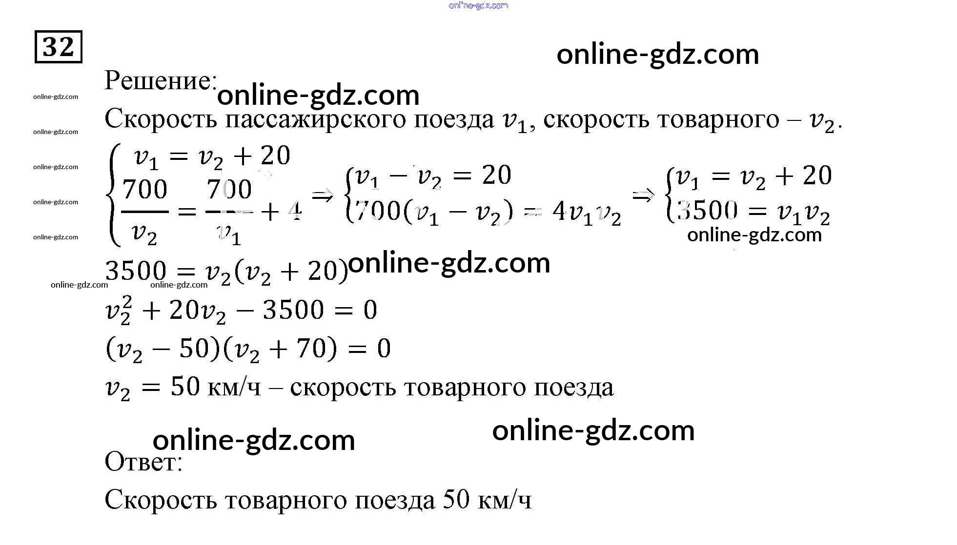 Готовые домашние задания по Алгебре за 9 класс Задачник Мордкович, Александрова 2010 - Задачи на составление уравнений или систем уравнений Итоговое повторение (2010) 32