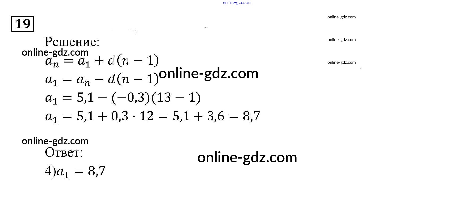 Готовые домашние задания по Алгебре за 9 класс Задачник Мордкович, Александрова 2010 - Арифметическая и геометрическая прогрессии Итоговое повторение (2010) 19
