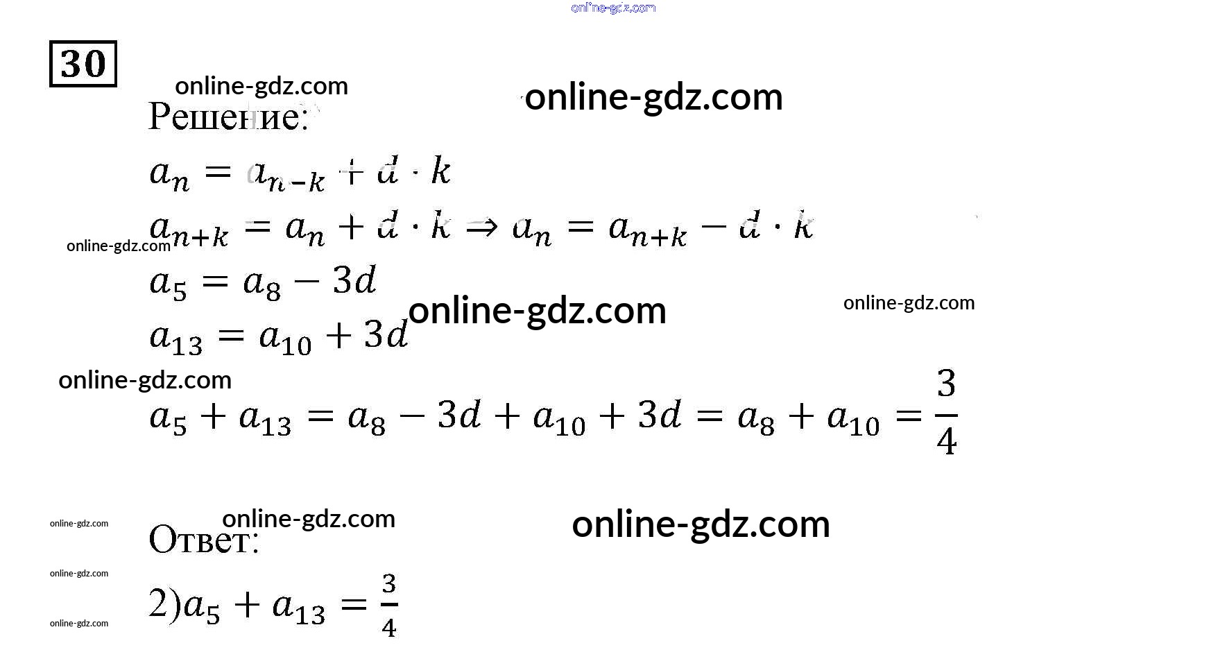 Готовые домашние задания по Алгебре за 9 класс Задачник Мордкович, Александрова 2010 - Арифметическая и геометрическая прогрессии Итоговое повторение (2010) 30