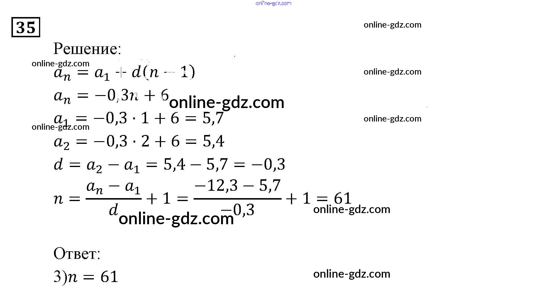 Готовые домашние задания по Алгебре за 9 класс Задачник Мордкович, Александрова 2010 - Арифметическая и геометрическая прогрессии Итоговое повторение (2010) 35