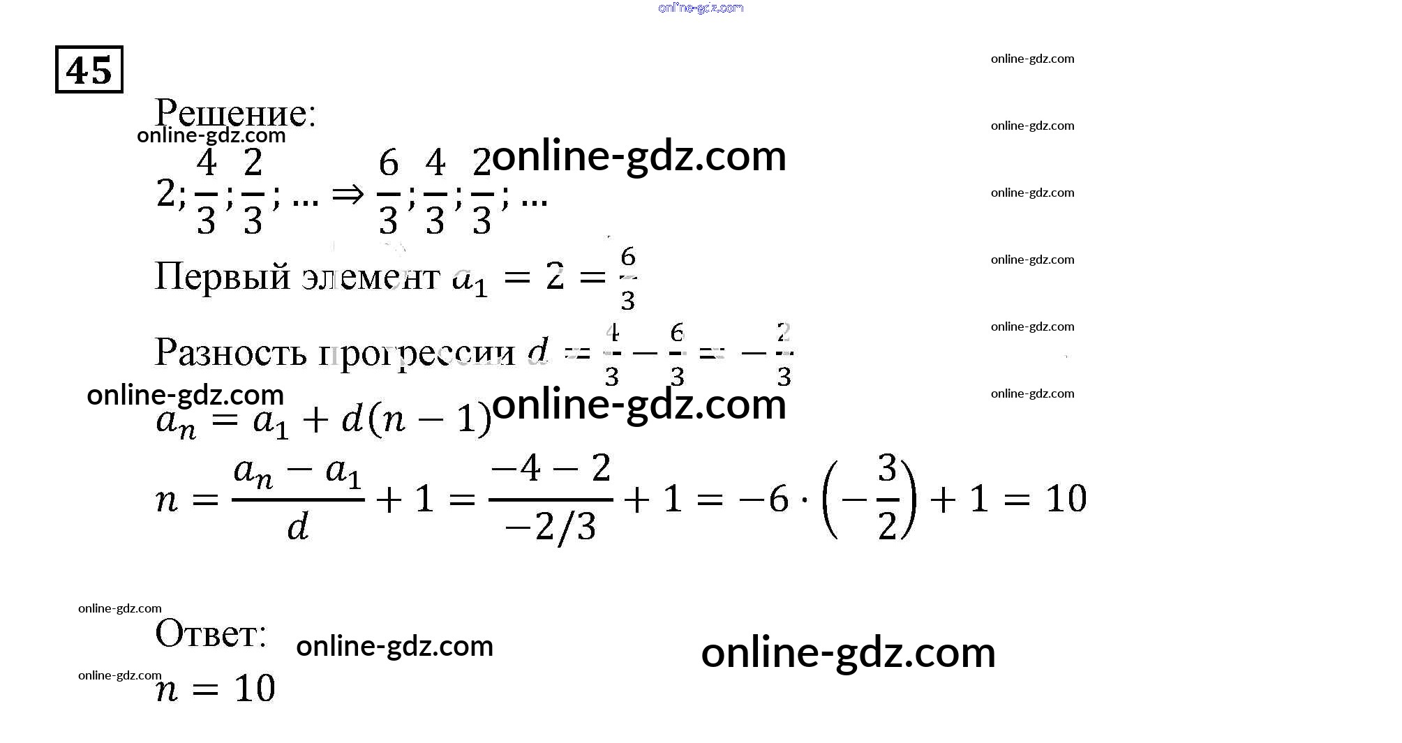 Готовые домашние задания по Алгебре за 9 класс Задачник Мордкович, Александрова 2010 - Арифметическая и геометрическая прогрессии Итоговое повторение (2010) 45