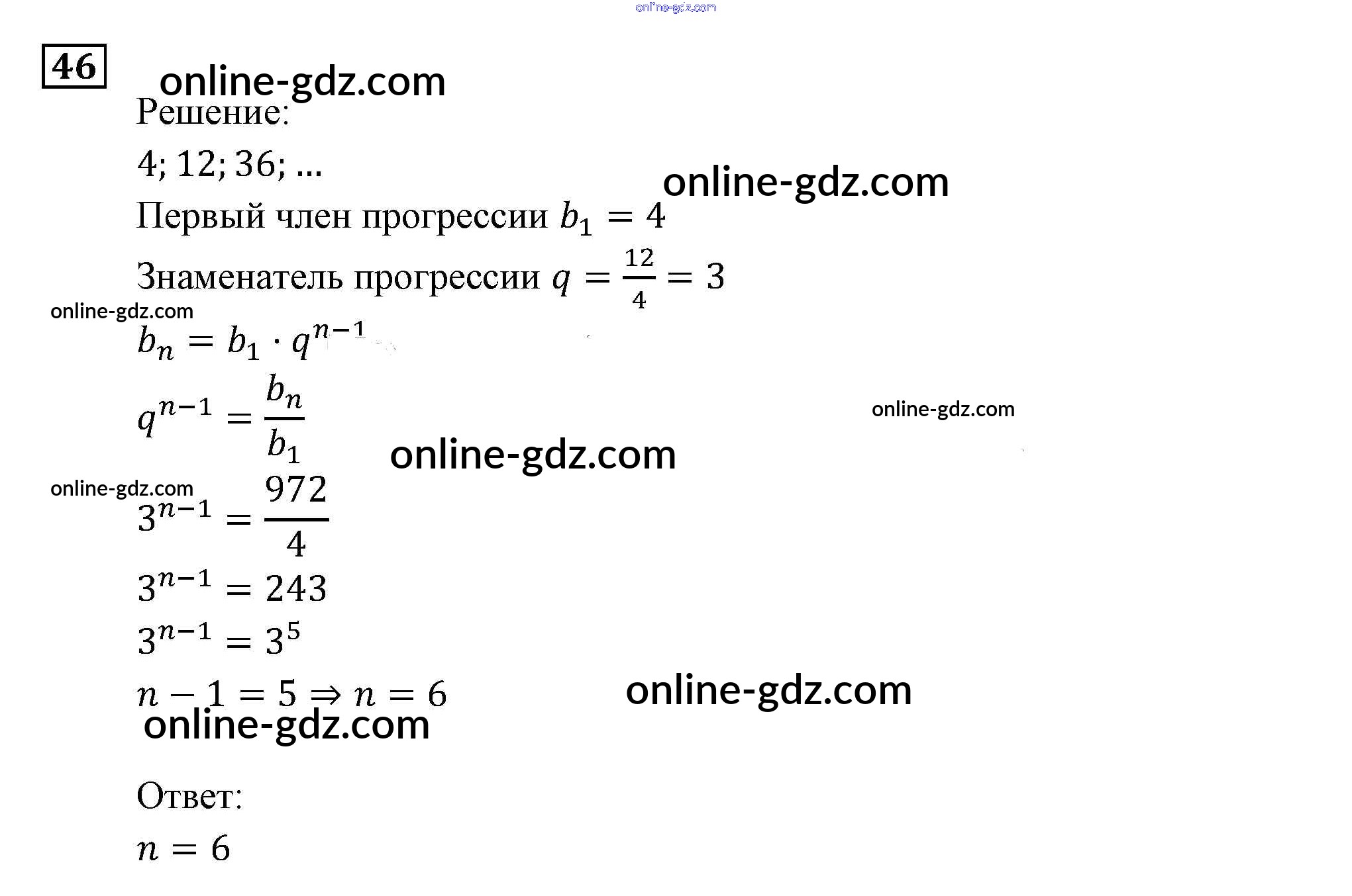 Готовые домашние задания по Алгебре за 9 класс Задачник Мордкович, Александрова 2010 - Арифметическая и геометрическая прогрессии Итоговое повторение (2010) 46