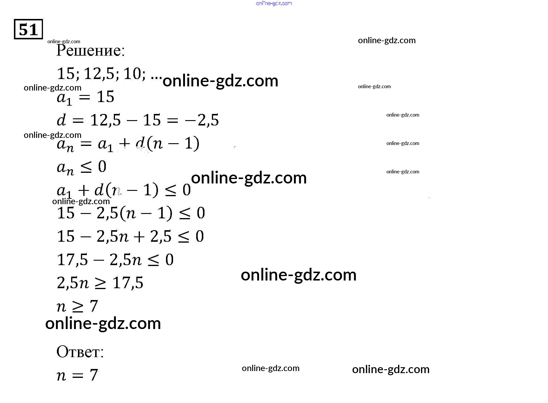 Готовые домашние задания по Алгебре за 9 класс Задачник Мордкович, Александрова 2010 - Арифметическая и геометрическая прогрессии Итоговое повторение (2010) 51
