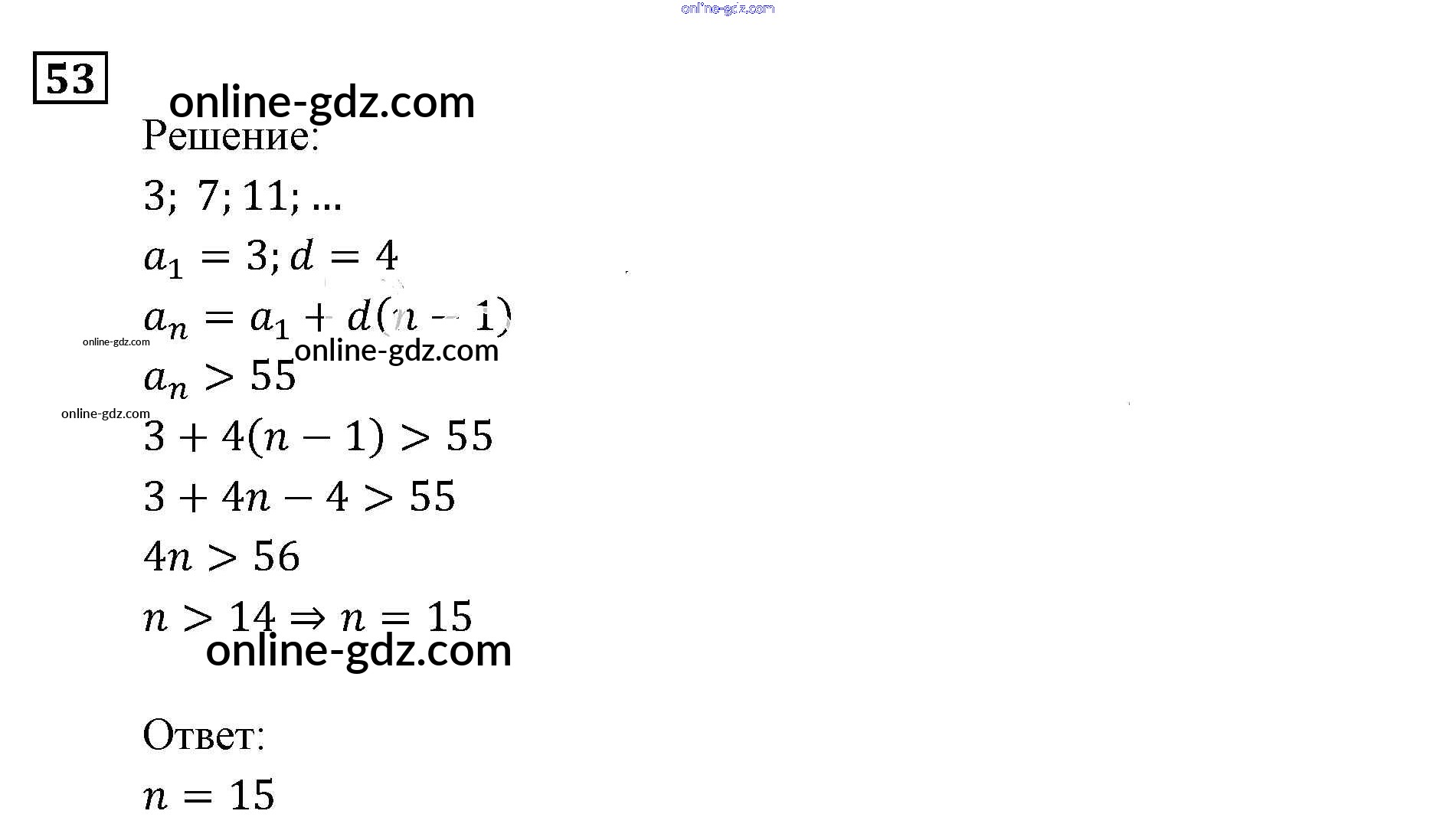 Готовые домашние задания по Алгебре за 9 класс Задачник Мордкович, Александрова 2010 - Арифметическая и геометрическая прогрессии Итоговое повторение (2010) 53