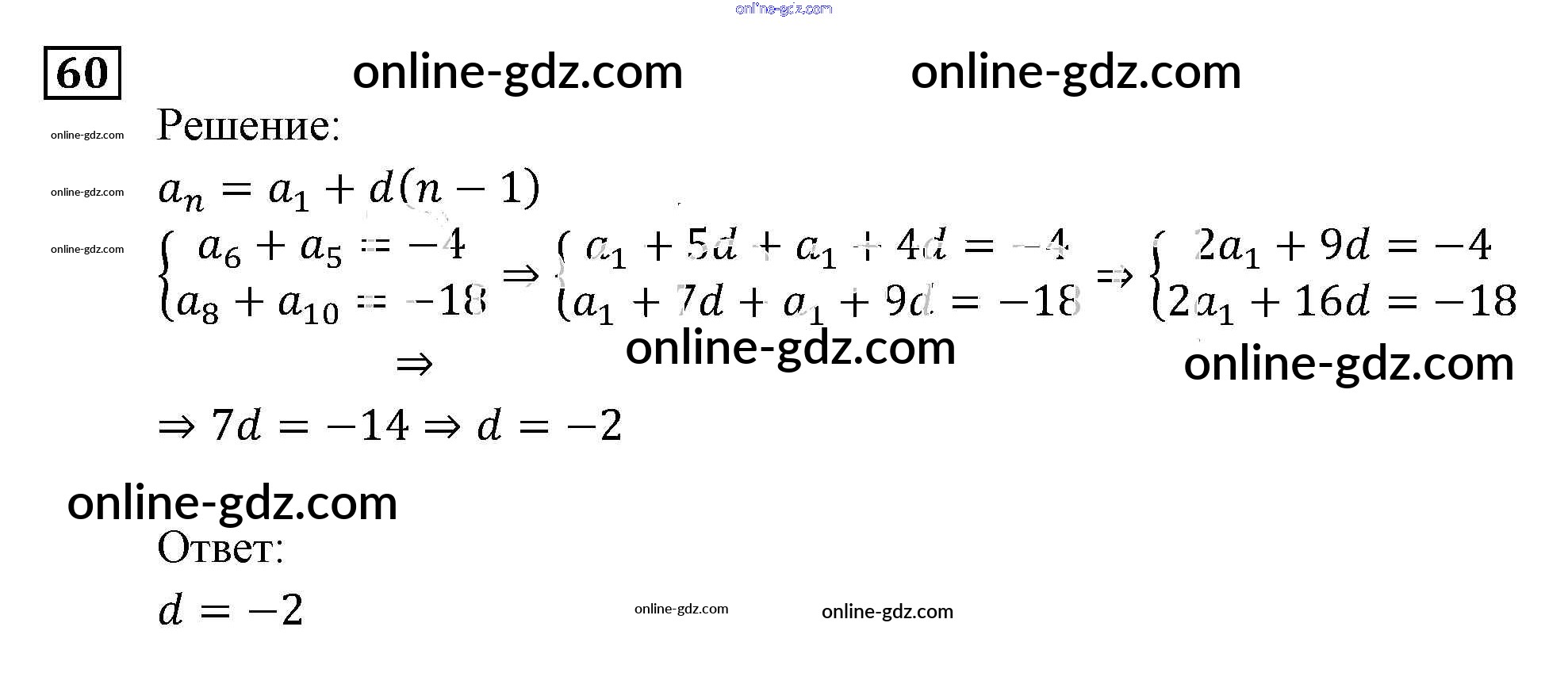 Готовые домашние задания по Алгебре за 9 класс Задачник Мордкович, Александрова 2010 - Арифметическая и геометрическая прогрессии Итоговое повторение (2010) 60