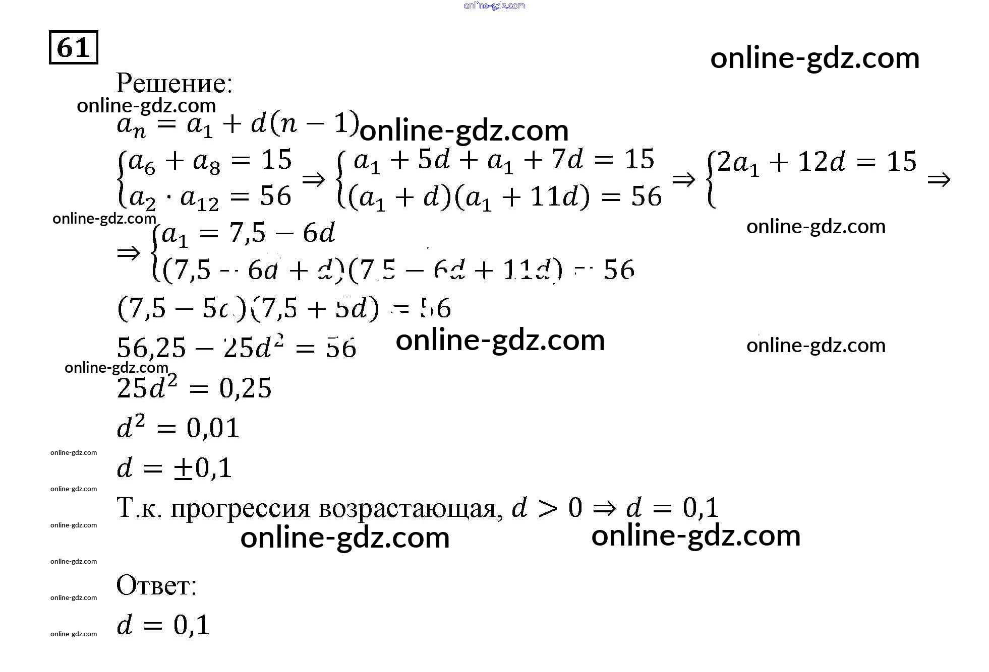 Готовые домашние задания по Алгебре за 9 класс Задачник Мордкович, Александрова 2010 - Арифметическая и геометрическая прогрессии Итоговое повторение (2010) 61