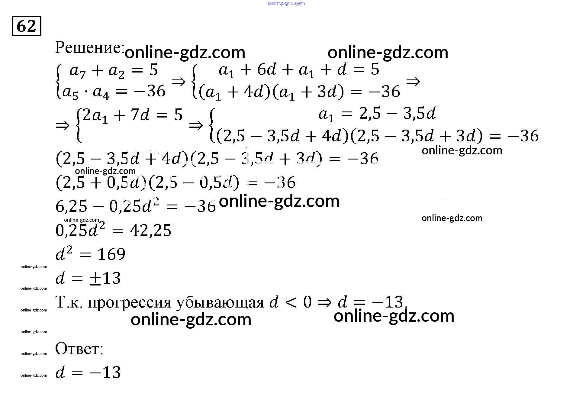 Готовые домашние задания по Алгебре за 9 класс Задачник Мордкович, Александрова 2010 - Арифметическая и геометрическая прогрессии Итоговое повторение (2010) 62