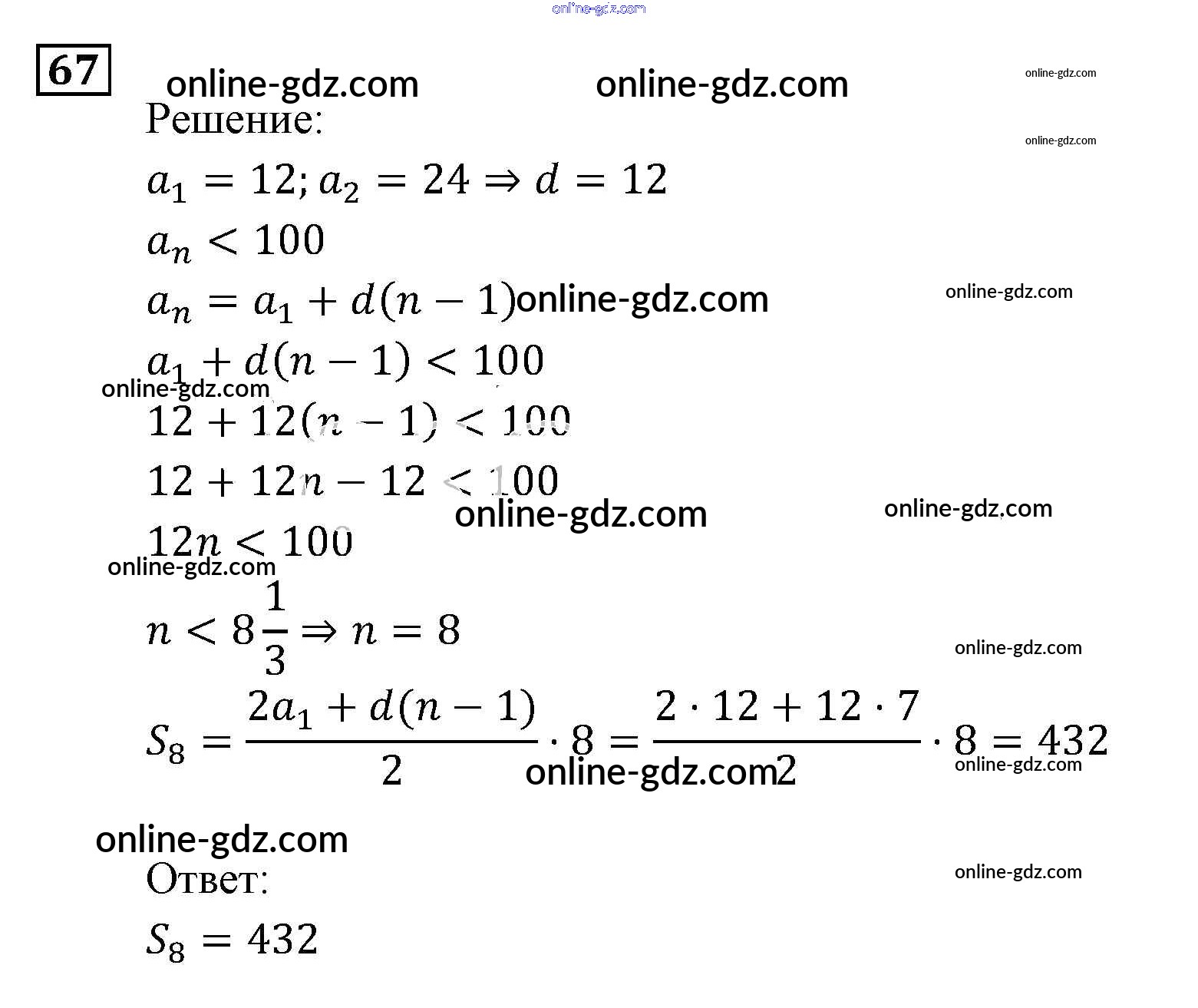 Готовые домашние задания по Алгебре за 9 класс Задачник Мордкович, Александрова 2010 - Арифметическая и геометрическая прогрессии Итоговое повторение (2010) 67
