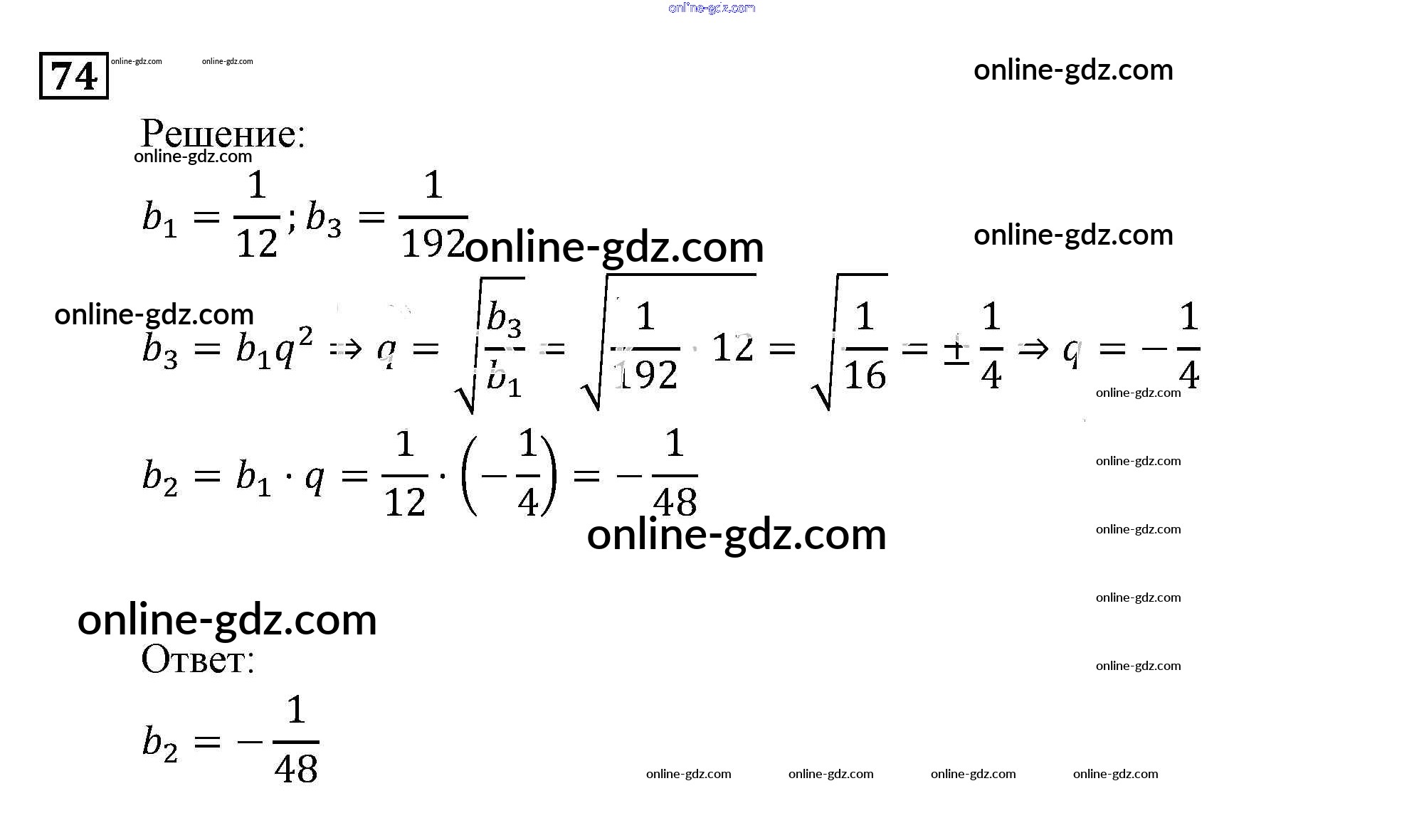 Готовые домашние задания по Алгебре за 9 класс Задачник Мордкович, Александрова 2010 - Арифметическая и геометрическая прогрессии Итоговое повторение (2010) 74