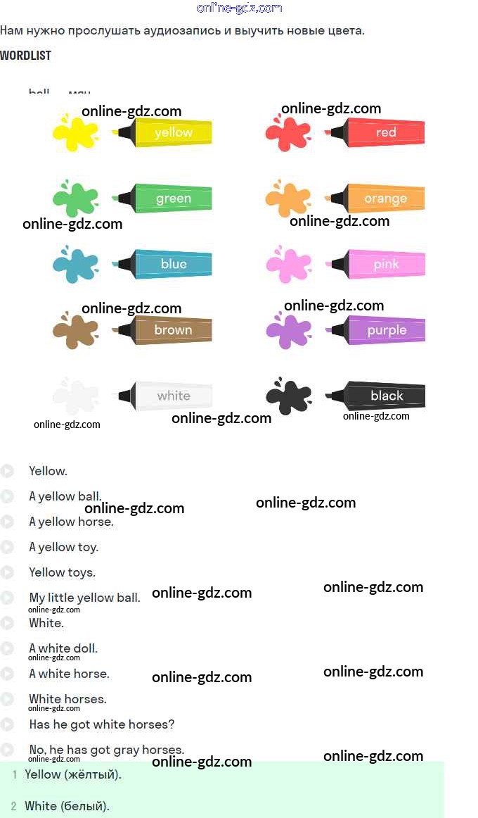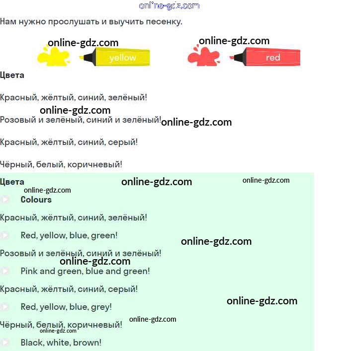 Готовые домашние задания по Английскому языку за 1 класс Учебник Верещагина, Притыкина Английский для школьников 2017 - Страницы 107