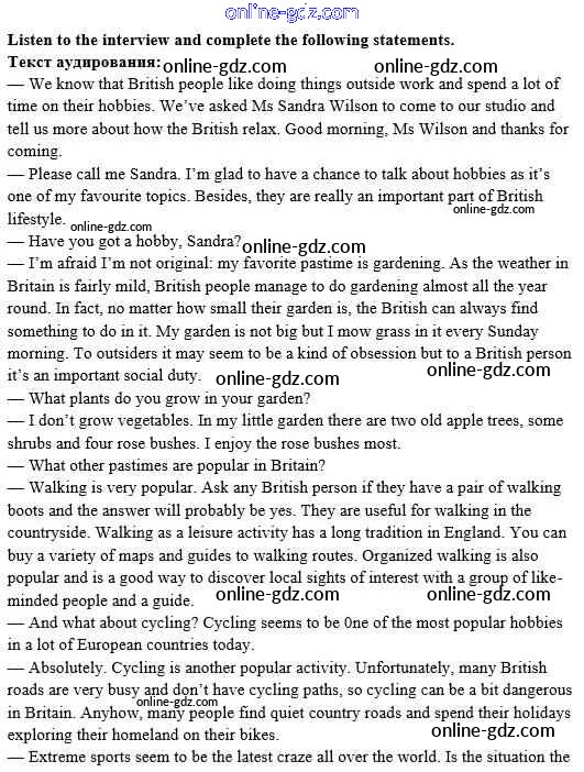 Готовые домашние задания по Английскому языку за 10 класс Рабочая тетрадь Афанасьева, Михеева Rainbow 2016 - Unit 1. In Harmony with Yourself 1