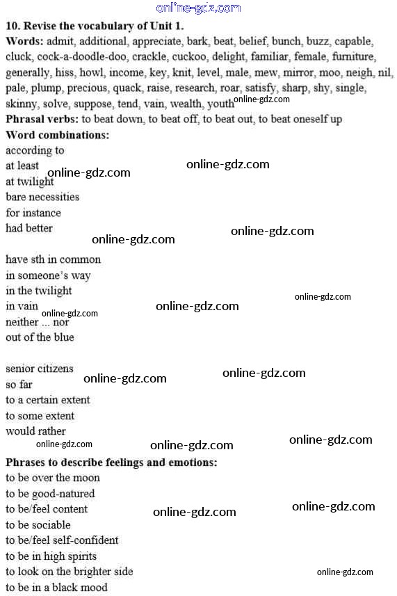 Готовые домашние задания по Английскому языку за 10 класс Рабочая тетрадь Афанасьева, Михеева Rainbow 2016 - Unit 1. In Harmony with Yourself 10