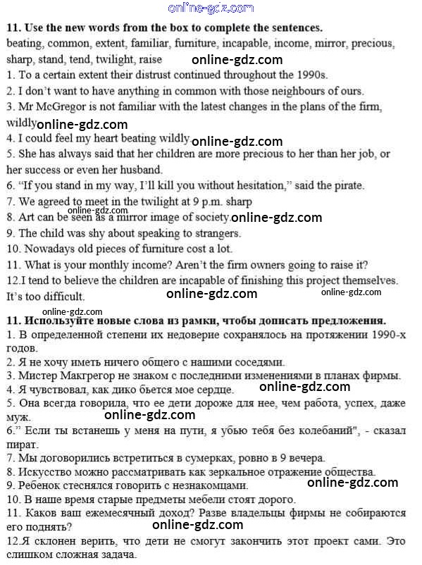 Готовые домашние задания по Английскому языку за 10 класс Рабочая тетрадь Афанасьева, Михеева Rainbow 2016 - Unit 1. In Harmony with Yourself 11