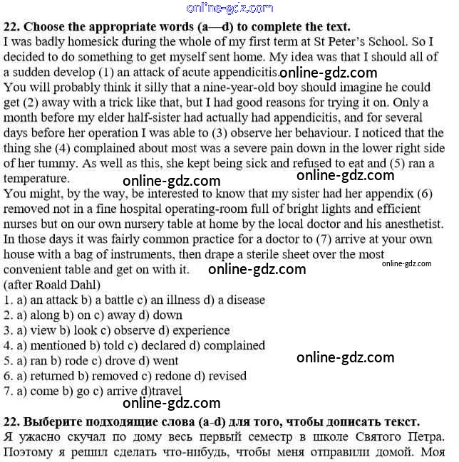 Готовые домашние задания по Английскому языку за 10 класс Рабочая тетрадь Афанасьева, Михеева Rainbow 2016 - Unit 1. In Harmony with Yourself 22