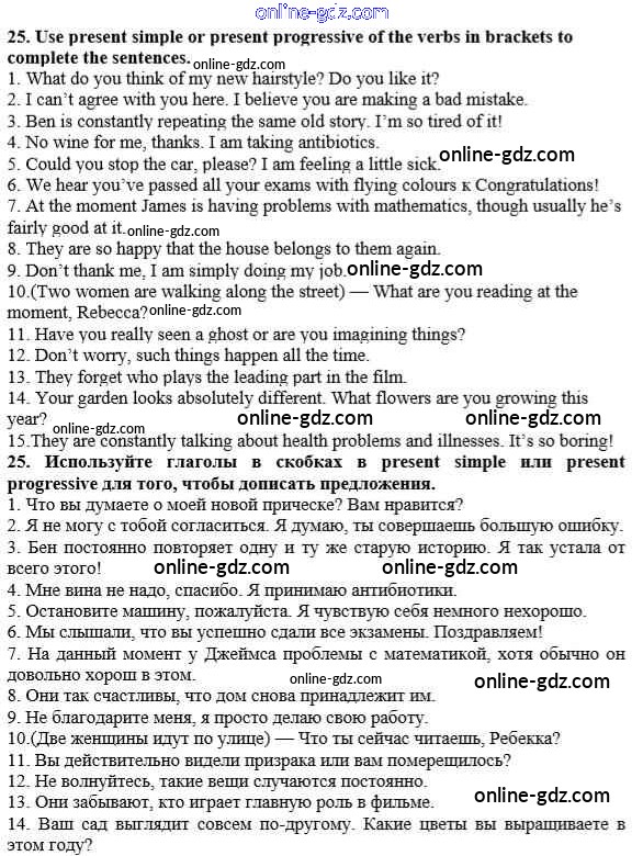 Готовые домашние задания по Английскому языку за 10 класс Рабочая тетрадь Афанасьева, Михеева Rainbow 2016 - Unit 1. In Harmony with Yourself 25