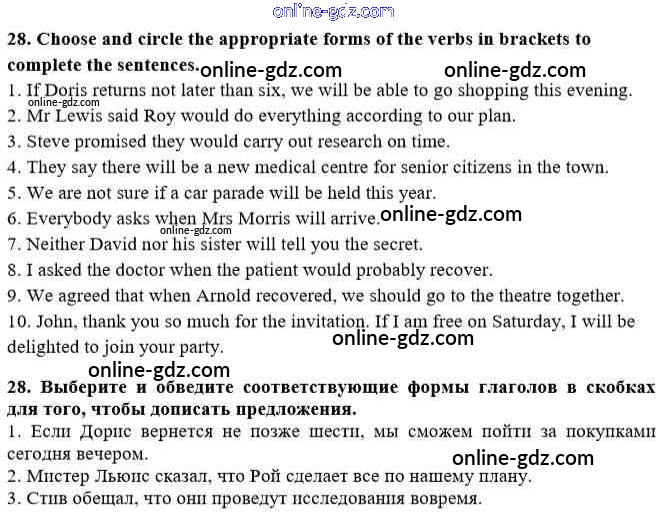 Готовые домашние задания по Английскому языку за 10 класс Рабочая тетрадь Афанасьева, Михеева Rainbow 2016 - Unit 1. In Harmony with Yourself 28
