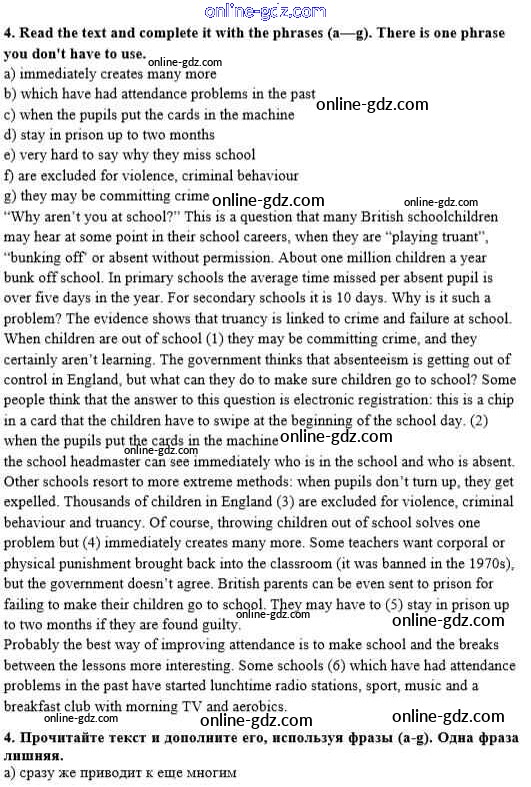 Готовые домашние задания по Английскому языку за 10 класс Рабочая тетрадь Афанасьева, Михеева Rainbow 2016 - Unit 1. In Harmony with Yourself 4