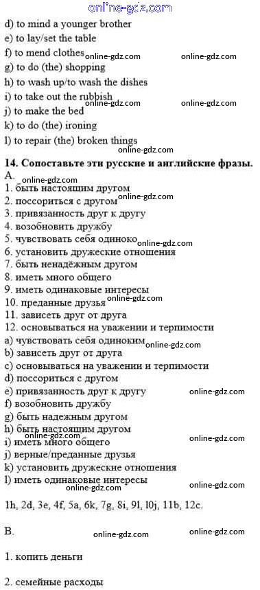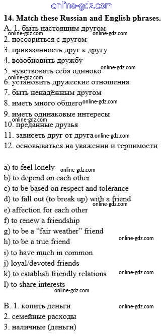 Готовые домашние задания по Английскому языку за 10 класс Рабочая тетрадь Афанасьева, Михеева Rainbow 2016 - Unit 2. In Harmony with Others 14