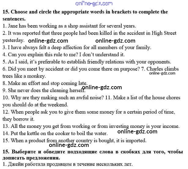 Готовые домашние задания по Английскому языку за 10 класс Рабочая тетрадь Афанасьева, Михеева Rainbow 2016 - Unit 2. In Harmony with Others 15