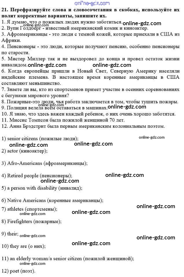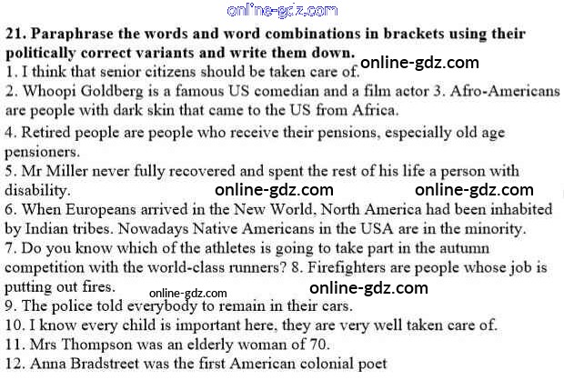 Готовые домашние задания по Английскому языку за 10 класс Рабочая тетрадь Афанасьева, Михеева Rainbow 2016 - Unit 2. In Harmony with Others 21