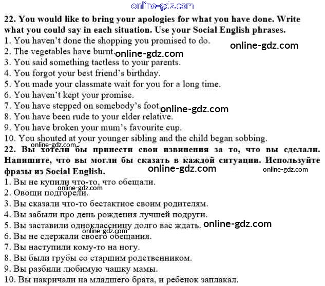 Готовые домашние задания по Английскому языку за 10 класс Рабочая тетрадь Афанасьева, Михеева Rainbow 2016 - Unit 2. In Harmony with Others 22