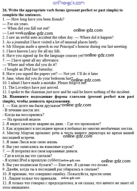 Готовые домашние задания по Английскому языку за 10 класс Рабочая тетрадь Афанасьева, Михеева Rainbow 2016 - Unit 2. In Harmony with Others 26
