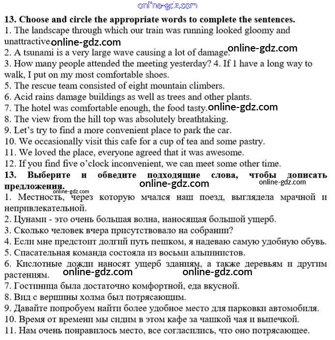 Готовые домашние задания по Английскому языку за 10 класс Рабочая тетрадь Афанасьева, Михеева Rainbow 2016 - Unit 3. In Harmony with Nature 13