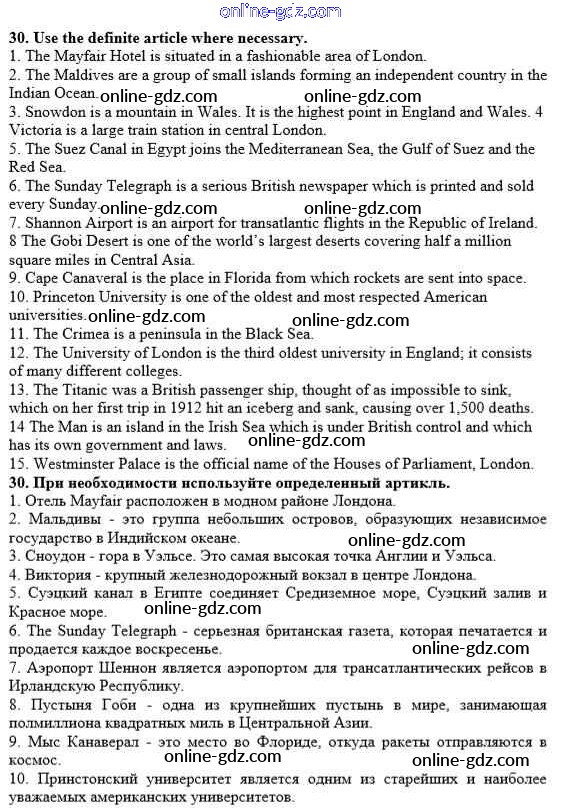 Готовые домашние задания по Английскому языку за 10 класс Рабочая тетрадь Афанасьева, Михеева Rainbow 2016 - Unit 3. In Harmony with Nature 30