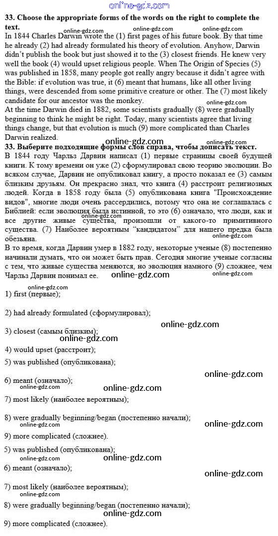 Готовые домашние задания по Английскому языку за 10 класс Рабочая тетрадь Афанасьева, Михеева Rainbow 2016 - Unit 3. In Harmony with Nature 33