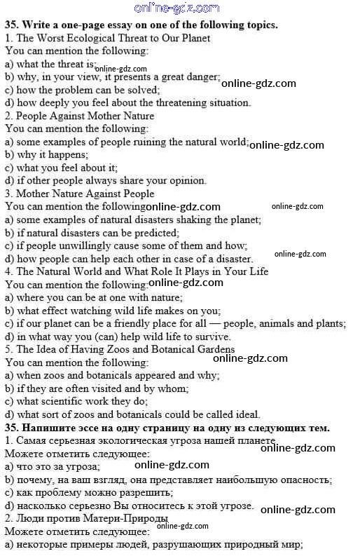 Готовые домашние задания по Английскому языку за 10 класс Рабочая тетрадь Афанасьева, Михеева Rainbow 2016 - Unit 3. In Harmony with Nature 35