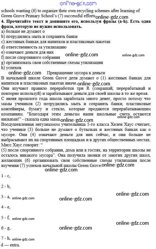 Готовые домашние задания по Английскому языку за 10 класс Рабочая тетрадь Афанасьева, Михеева Rainbow 2016 - Unit 3. In Harmony with Nature 4