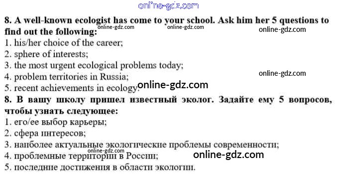 Готовые домашние задания по Английскому языку за 10 класс Рабочая тетрадь Афанасьева, Михеева Rainbow 2016 - Unit 3. In Harmony with Nature 8