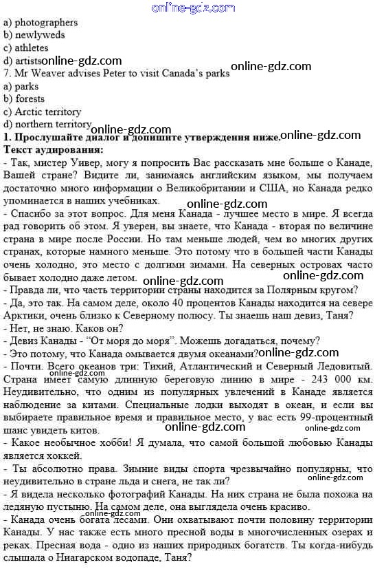 Готовые домашние задания по Английскому языку за 10 класс Рабочая тетрадь Афанасьева, Михеева Rainbow 2016 - Unit 4. In Harmony with the World 1