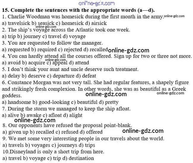 Готовые домашние задания по Английскому языку за 10 класс Рабочая тетрадь Афанасьева, Михеева Rainbow 2016 - Unit 4. In Harmony with the World 15