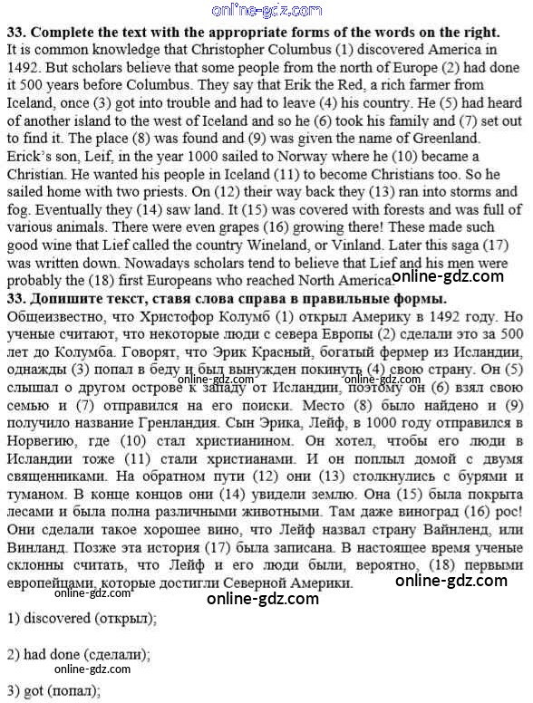 Готовые домашние задания по Английскому языку за 10 класс Рабочая тетрадь Афанасьева, Михеева Rainbow 2016 - Unit 4. In Harmony with the World 33