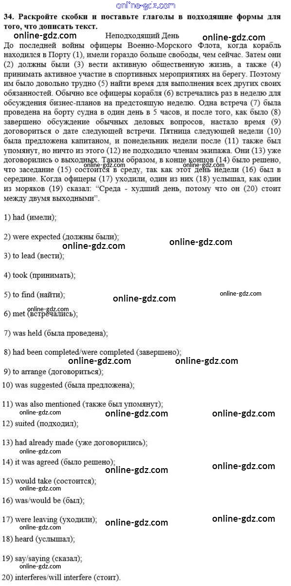 Готовые домашние задания по Английскому языку за 10 класс Рабочая тетрадь Афанасьева, Михеева Rainbow 2016 - Unit 4. In Harmony with the World 34