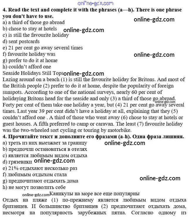 Готовые домашние задания по Английскому языку за 10 класс Рабочая тетрадь Афанасьева, Михеева Rainbow 2016 - Unit 4. In Harmony with the World 4