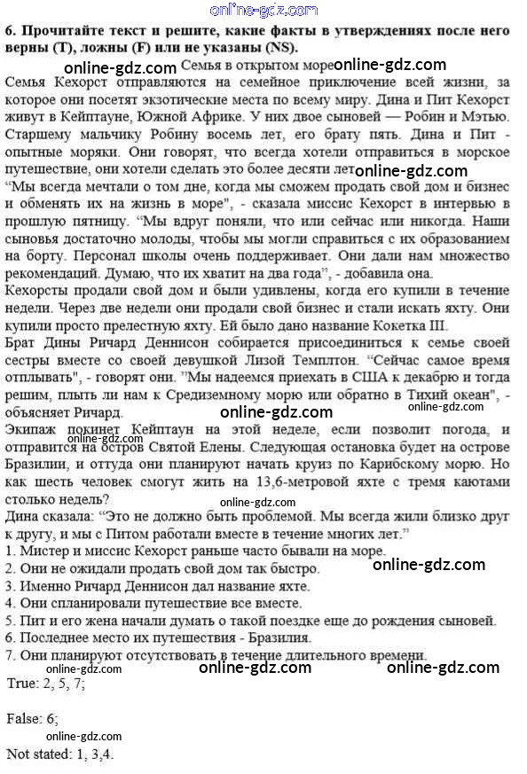 Готовые домашние задания по Английскому языку за 10 класс Рабочая тетрадь Афанасьева, Михеева Rainbow 2016 - Unit 4. In Harmony with the World 6