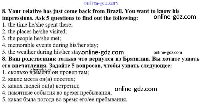 Готовые домашние задания по Английскому языку за 10 класс Рабочая тетрадь Афанасьева, Михеева Rainbow 2016 - Unit 4. In Harmony with the World 8